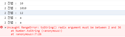 toString() 메서드를 사용하여 기수(radix)를 정합니다.