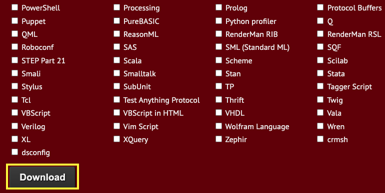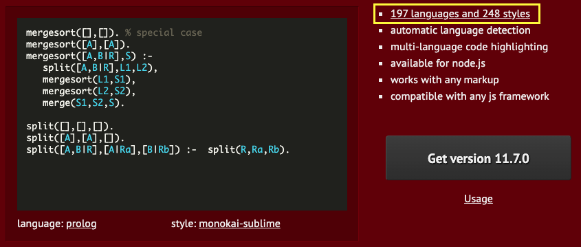 highlight 사이트를 접속한 뒤 '197 languages and 248 styles'을 클릭한다. 197개의 프로그래밍 언어와 248개의 스타일을 지원한다는 뜻이며 highlight의 버전이 업데이트될 때마다 표시되는 숫자는 달라질 수 있다.