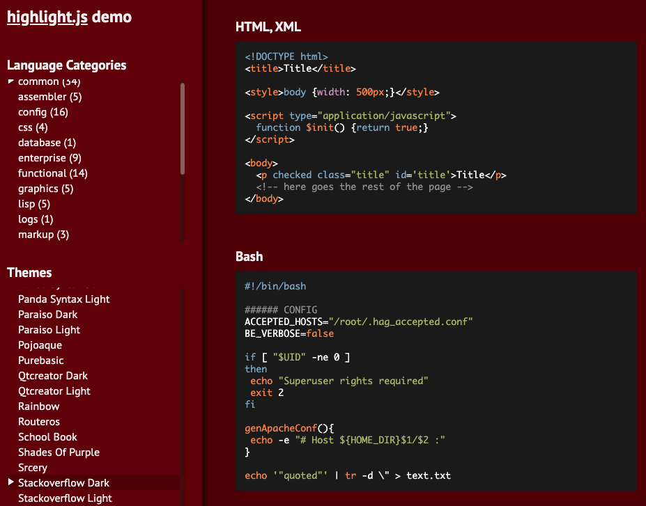 따라서, 'Stackoverflow Dark'가 아닌 'stackoverflow-dark'로 입력하고 highlight를 불러오는 코드를 추가한다. 아래는 테마 이름이 변경되었으며 highlight를 불러오는 수정된 코드다.
