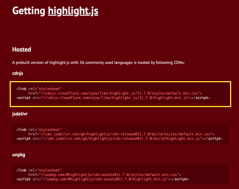 이번에는 CDN이 아닌 파일을 업로드해서 highlight 라이브러리를 적용할 수 있는 방법을 설명한다. CDN이란 쉽게 설명하자면 외부 정적 파일(css, js 등)을 가져와서 코드에 적용하는 방식을 말한다.