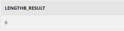 SELECT LENGTHB('ORACLE') AS LENGTHB_RESULT