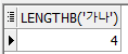 SELECT LENGTHB('가나')