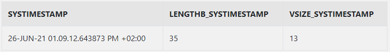 , LENGTHB(SYSTIMESTAMP) AS LENGTHB_SYSTIMESTAMP
