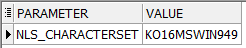 WHERE PARAMETER = 'NLS_CHARACTERSET';